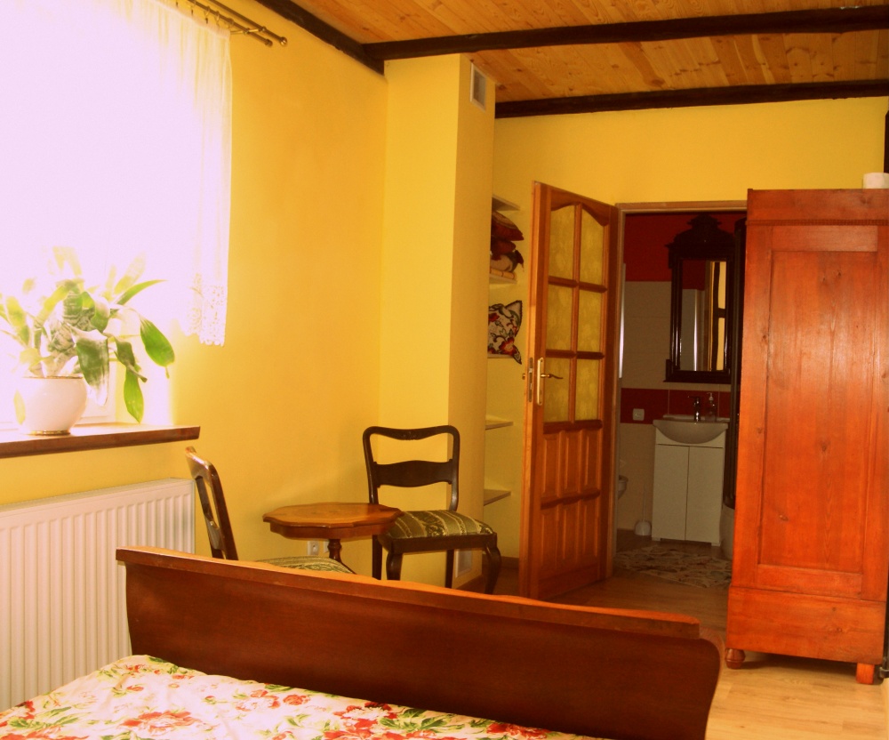 2 - osobowy pokój z łóżkiem małżeńskim ( wymiar materaca 140 x 200 - spręzynowy bonnelowy z matą kokosową ).