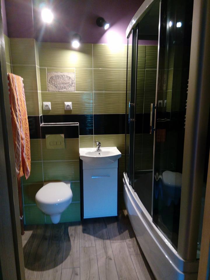 Łazienka z nowoczesną kabiną prysznicową (z hydromasażem - również stóp, deszczownicą oraz radiem.